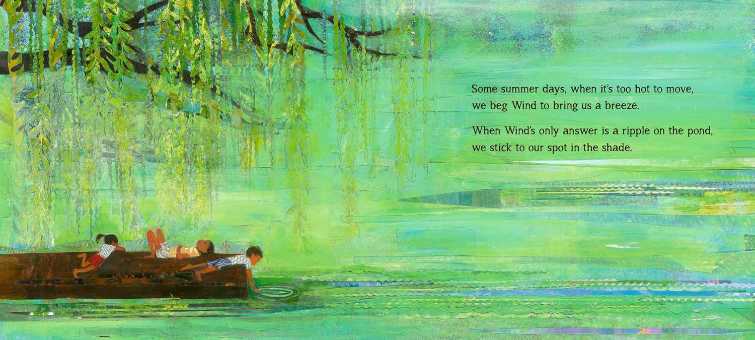 "Seasons come and go, and the wind wafts its way through them all. This delights a family of children, and when they ask the wind, "How will you blow today?" they get a kick out of not knowing what answer they'll get. Will the wind send gentle breezes that tickle and delight, cooling them off on hot days? Or strong gusts that knock their hats off and send them running inside on stormy days? One thing is for certain to our wind watchers--the wind is an always-changing wonder and constantly takes their breath away!"