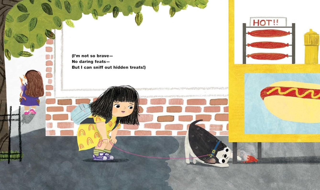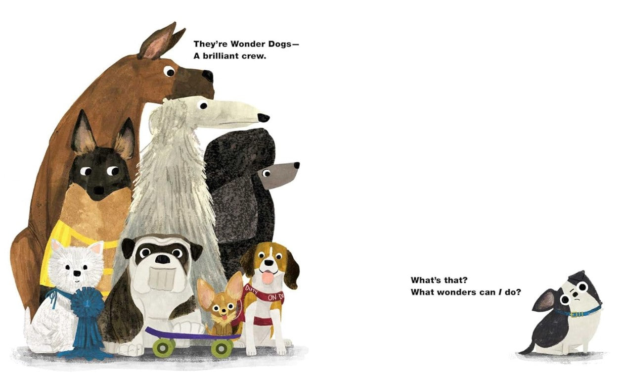 Next to these amazing dogs, everyday pooches like Butters might not look like much--he drools, he sheds, he hogs the bed. But he also listens close, and keeps us warm, and offers comfort in a storm. He's a wonder dog, too, and his superpower is loving you!"