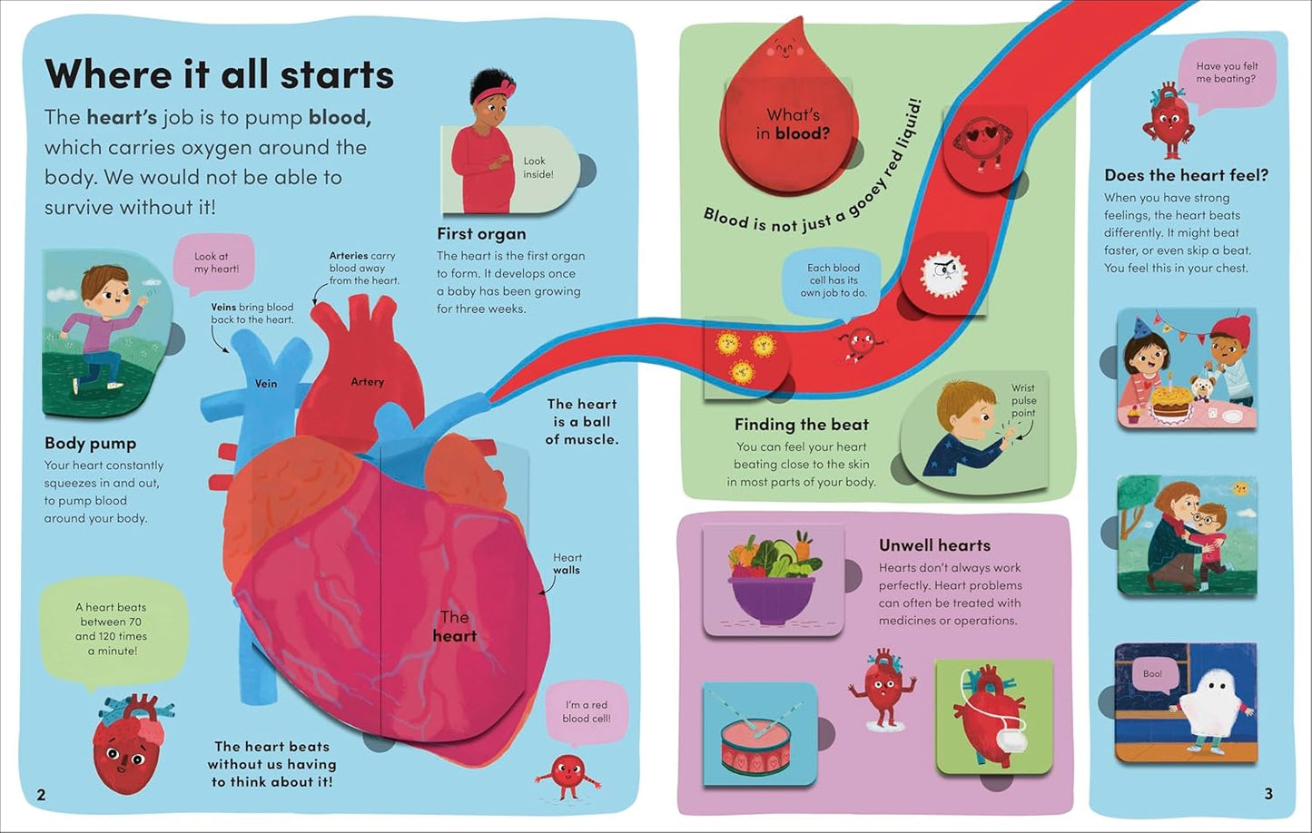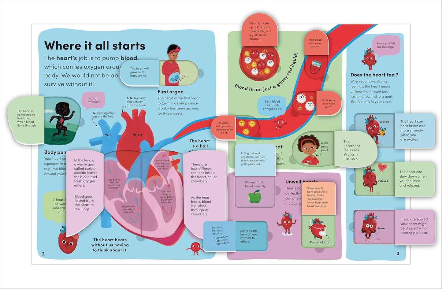 - Lots of interactive flaps that teach children how their bodies work and the link between physical and emotional wellbeing.