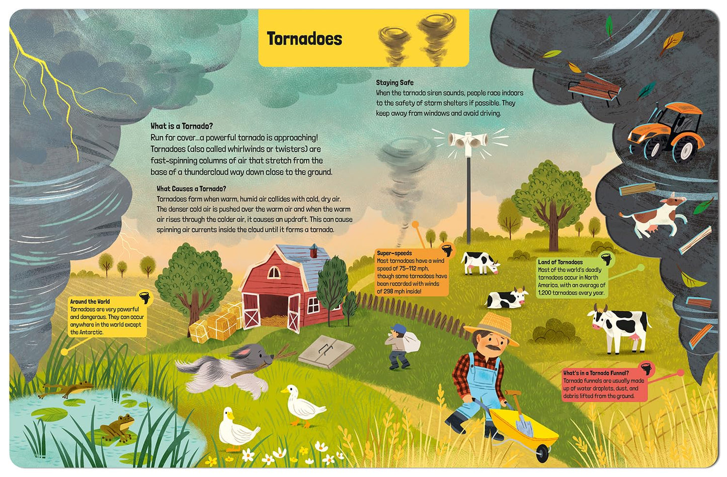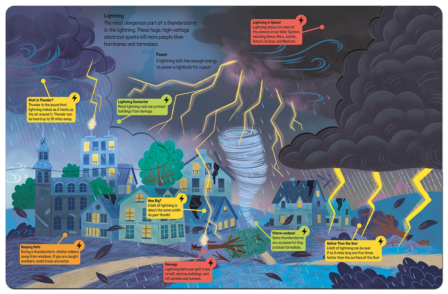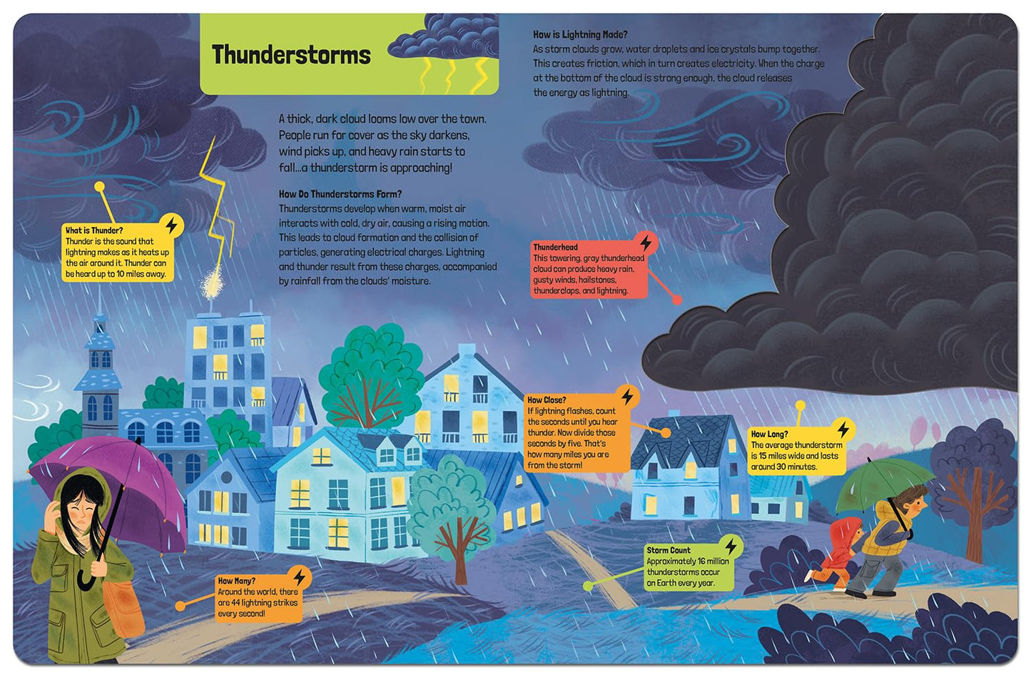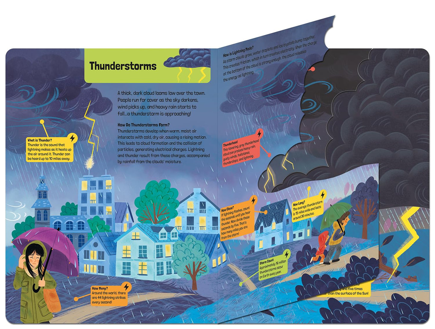With mind-blowing facts to discover and scenes that transform with the turn of each die-cut page, there's plenty to explore and learn about the powerful natural events that create the weather on our world. From powerful tornadoes, high-voltage thunderstorms, and destructive hurricanes to super-hot heatwaves, dangerous wildfires, and freezing snowstorms.