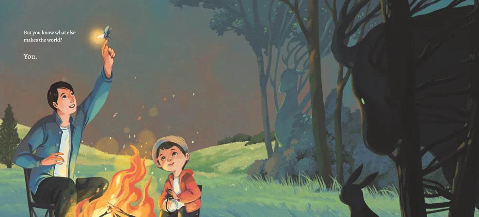 You Make the World is a fantastical journey between a father and child and the self discovery of the love and power within. Throughout their adventure together, the father describes his child's contagious energy and range of strong emotions as having the same intensity and beauty as the natural world.